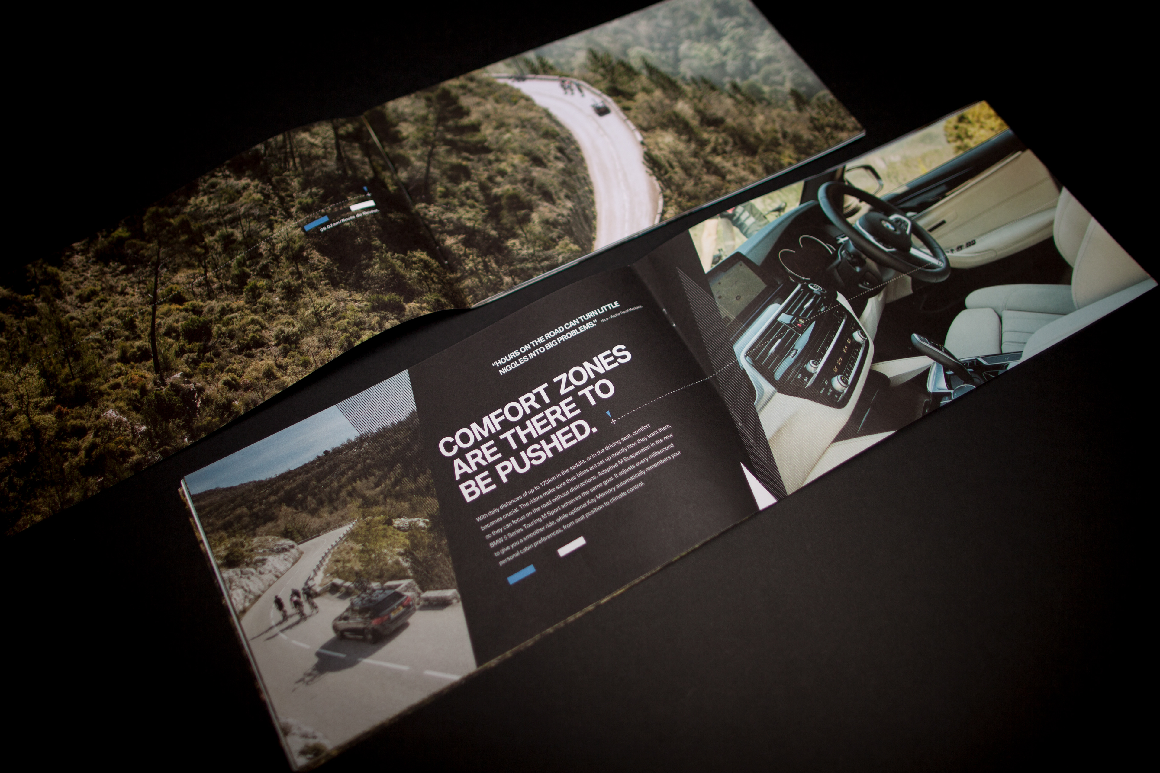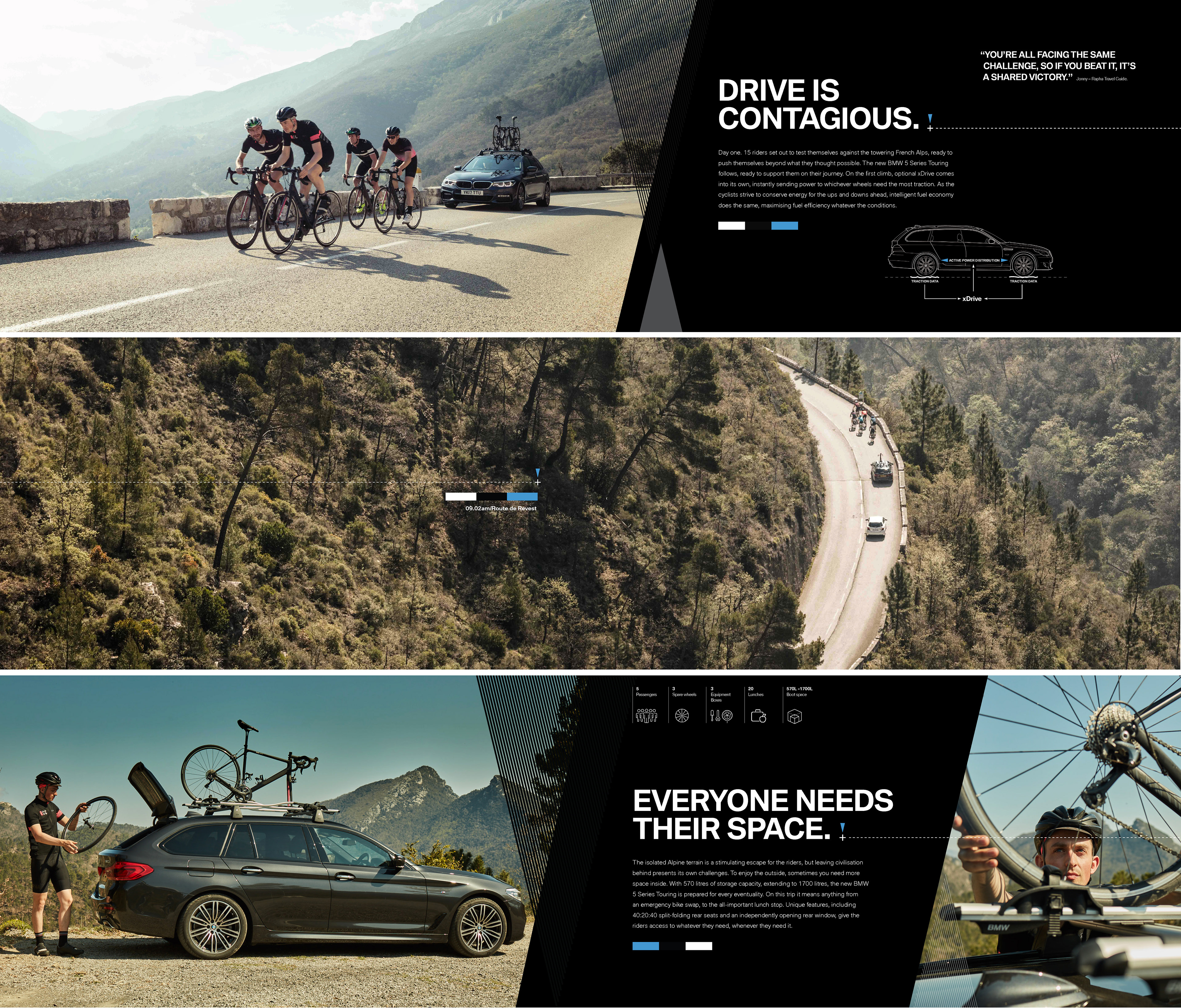 This is a DM piece that promotes the BMW Rapha Travel partnership. Both brands have a strong look & feel, the trick here was to balance the visual aesthetics of both.