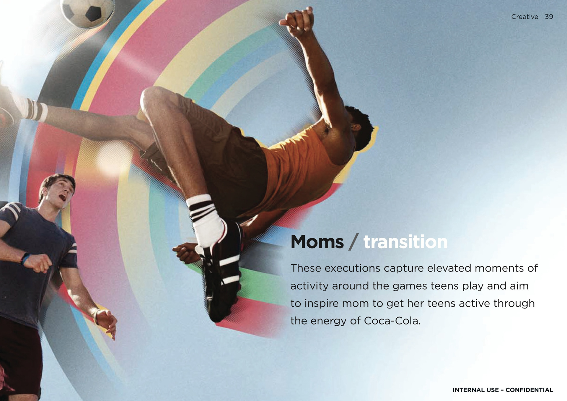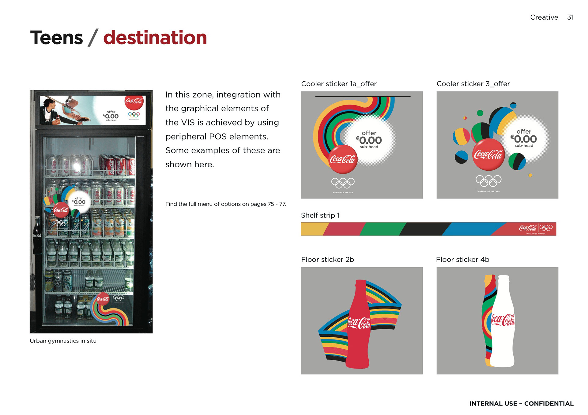 the solution: celebrate teenagers own olympic activities through the games that they play. And help mums get their kids off the sofa and get active.This global toolkit provided markets with over 140 executions to cover every part of the customer journey from 48 sheets, through point of sale, to small stickers & wraps that can be used flexibly in store. The toolkit helped markets understand where best to engage different types of consumer along their path to purchase to maximise their investment and made sure that all of our executions could be easily customised and downloaded from a web interface on Coca Cola's own site.