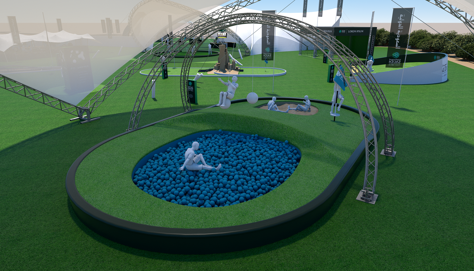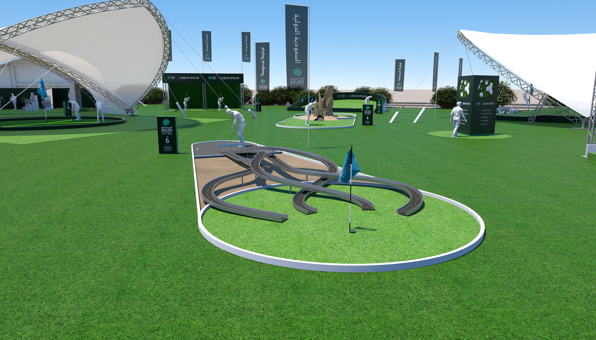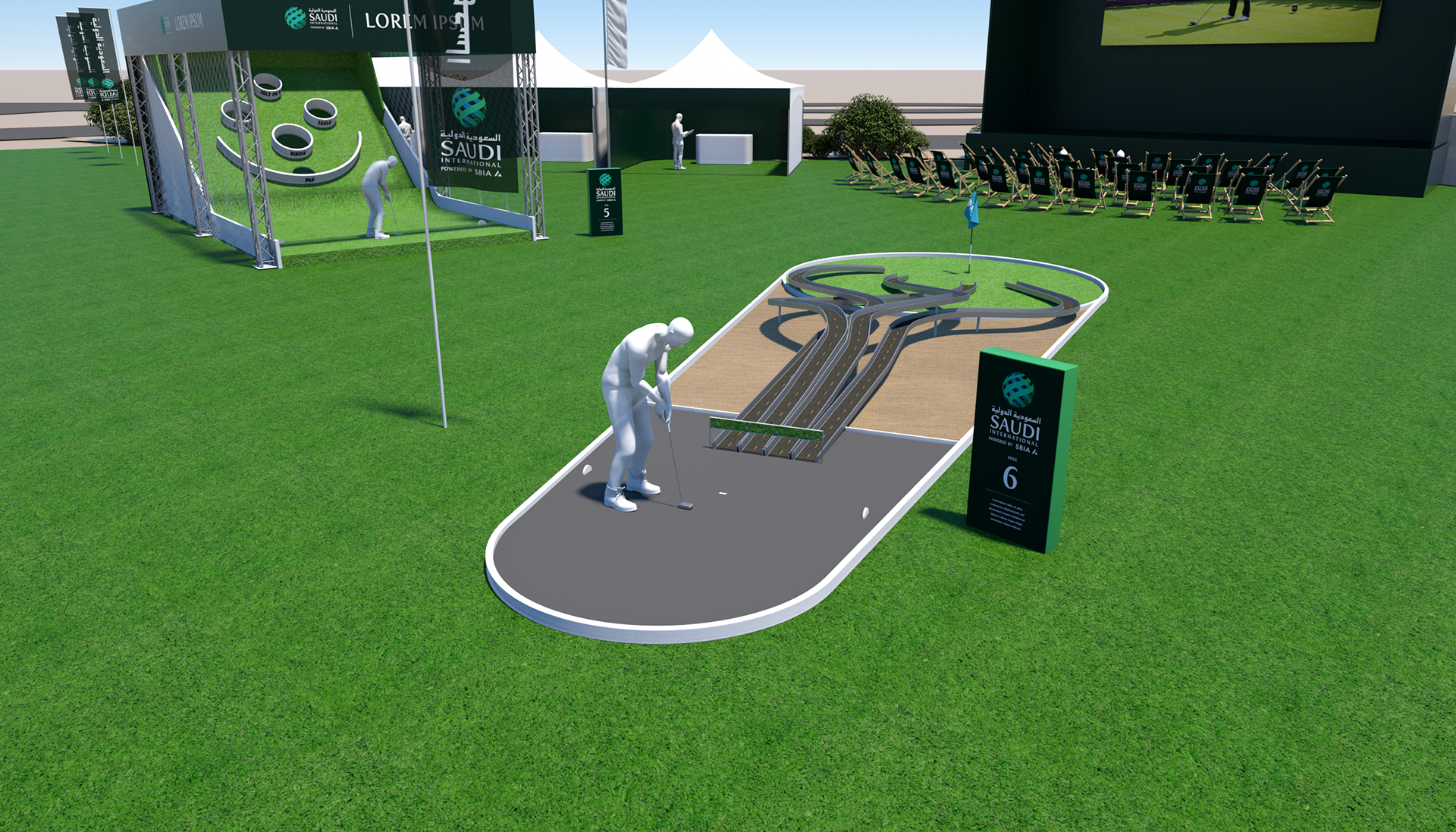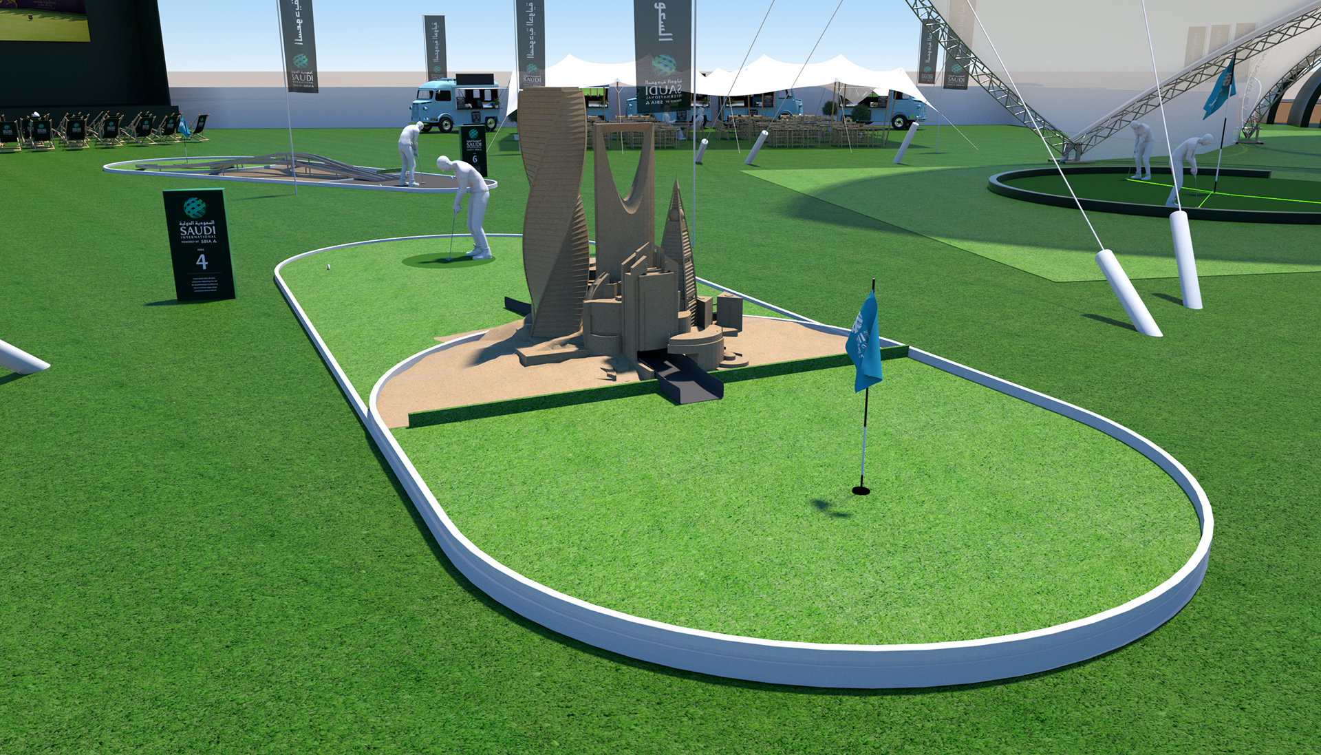 The brief: design a fanzrone for the 2019 European Tour, must include a crazy golf course and cover an area of 7000sqm!