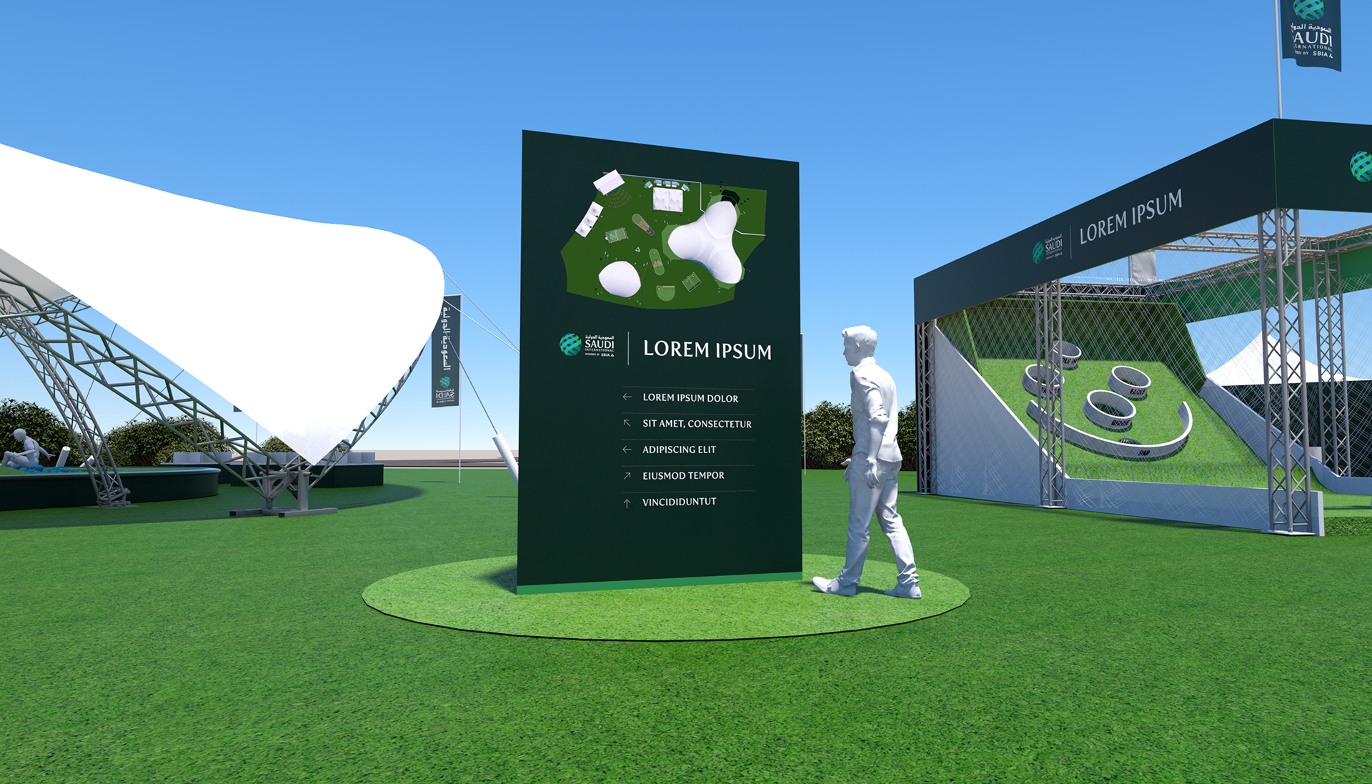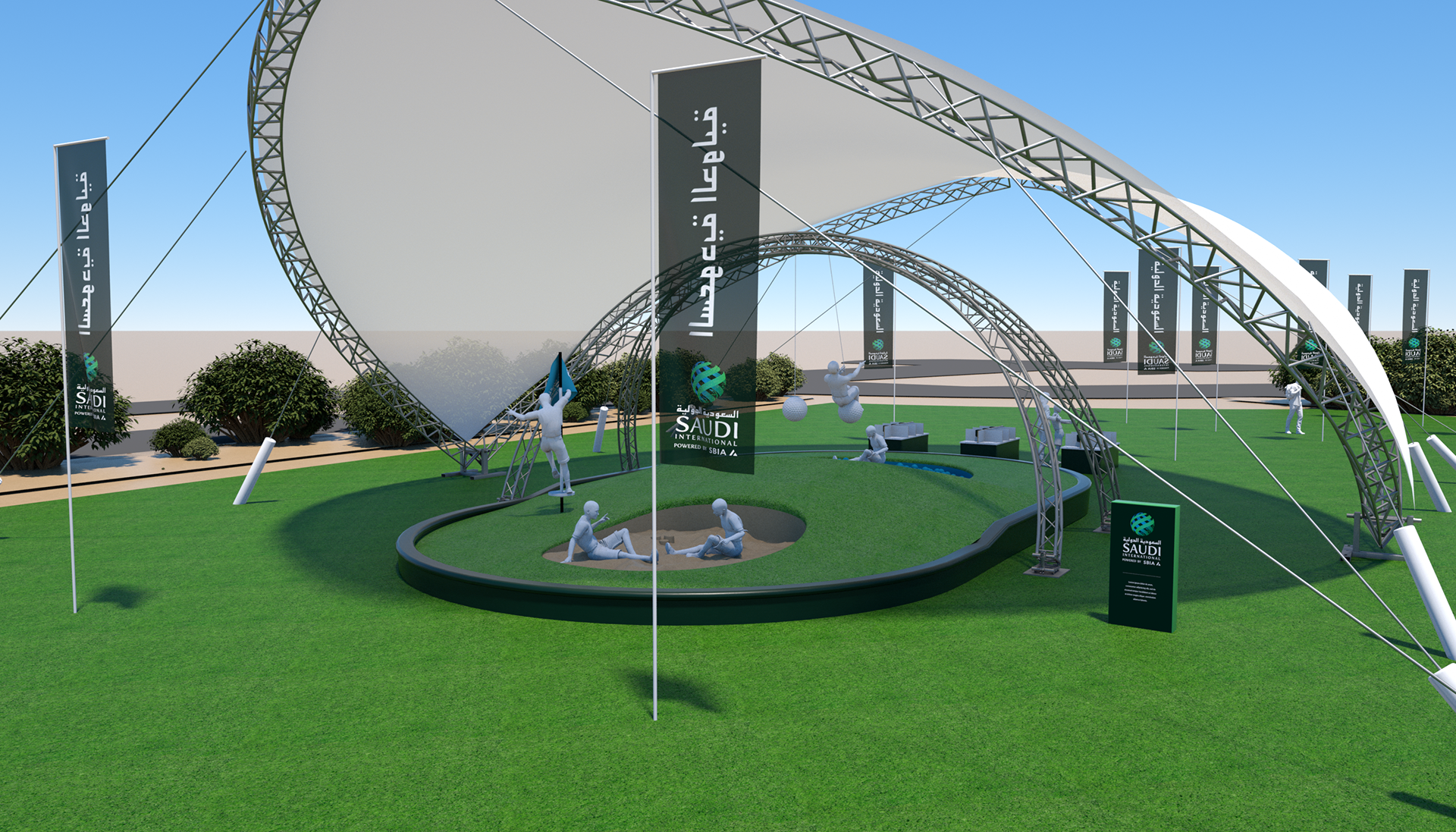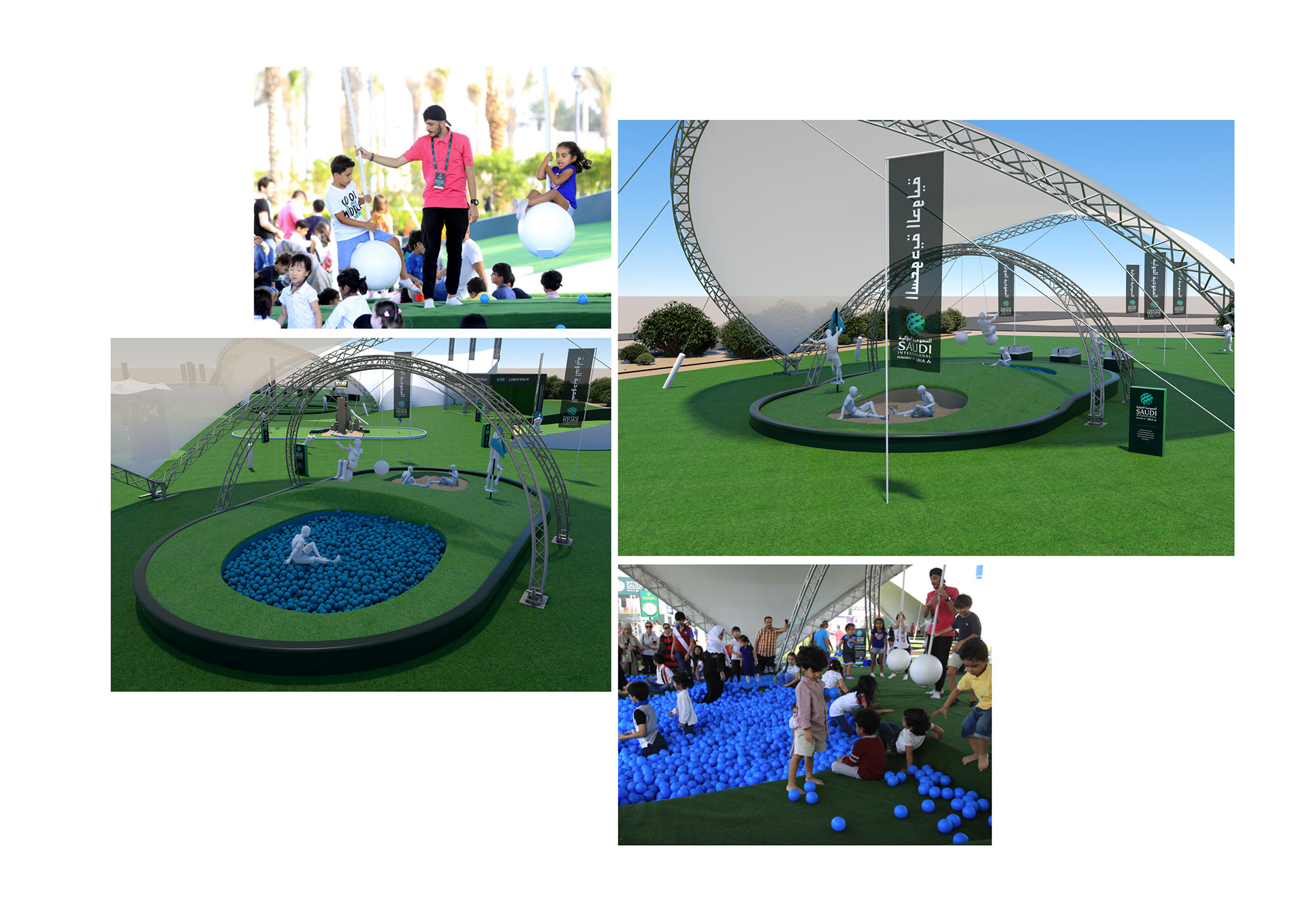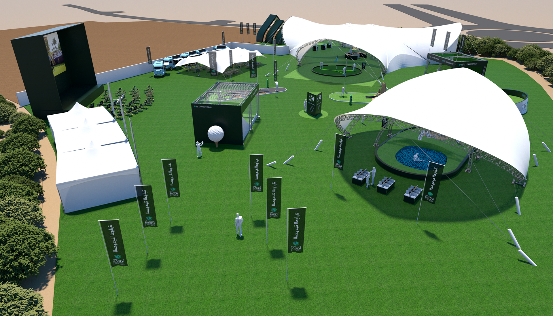 The big space was a lot of fun to play with I tried to make it accesable as possible as golf is a relatively new sport here + add a strong middle east flavour to the structure design.